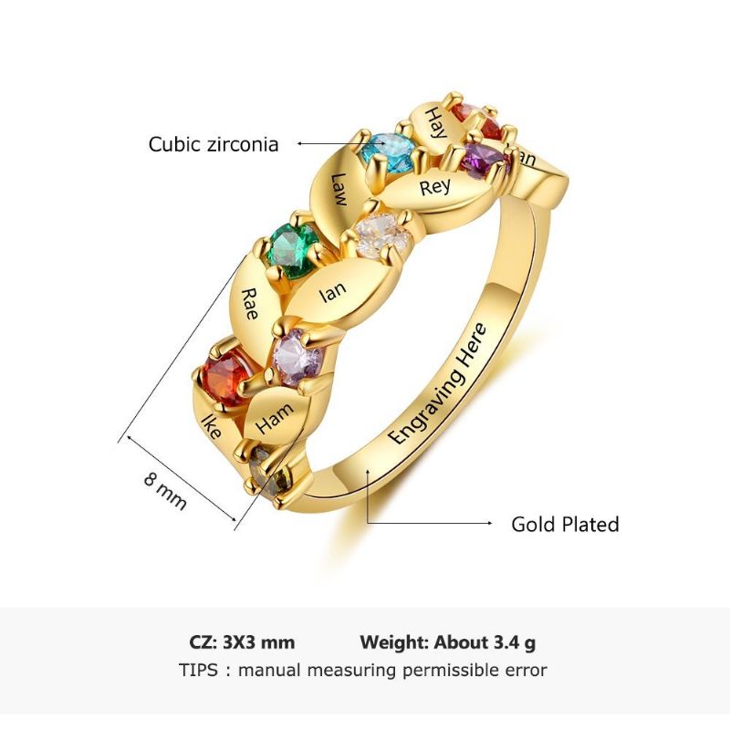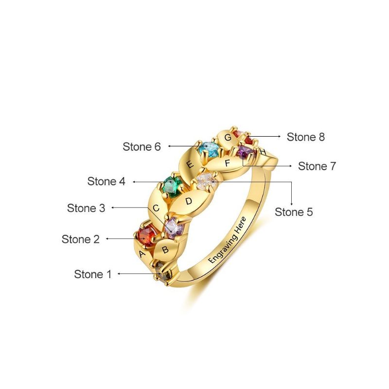 Anneaux De Pierre De Naissance En Or Anneaux De Mères En Argent Sterling 925 Personnalisé Pierre De Naissance Famille Zircon Cubique Bague Cadeau De Fête Des Mères