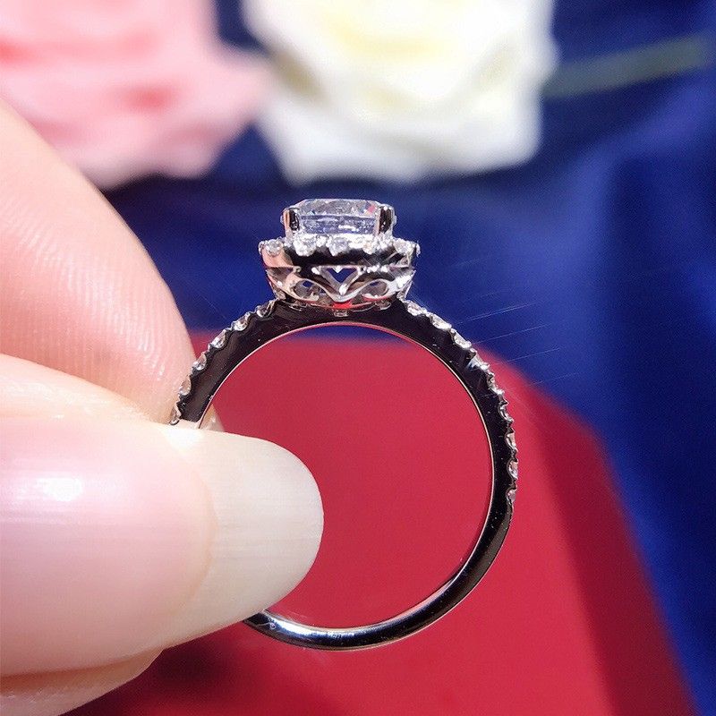 0.5 Ct 1.0 Ct 2.0 Ct 925 Argent Platine Plaqué Rond Diamant Simulé Promesse / Mariage / Bague De Fiançailles Pour Femmes Fille Amis Cadeau De Saint Valentin