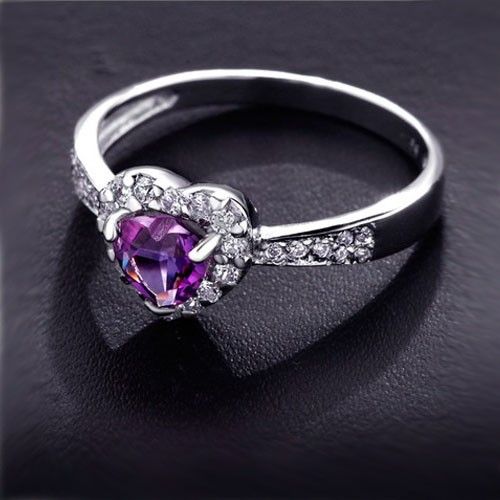 0.7 Ct Améthyste Coeur Zircone Cubique Bague En Argent Sterling 925 Plaqué Or Blanc Pour Femme