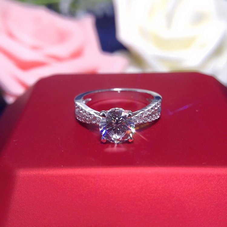 1.0 Ct 925 Argent Plaqué Platine Rond Simulé Promesse De Diamant / Mariage / Bague De Fiançailles Pour Les Femmes Fille Amis Cadeau De La Saint-valentin