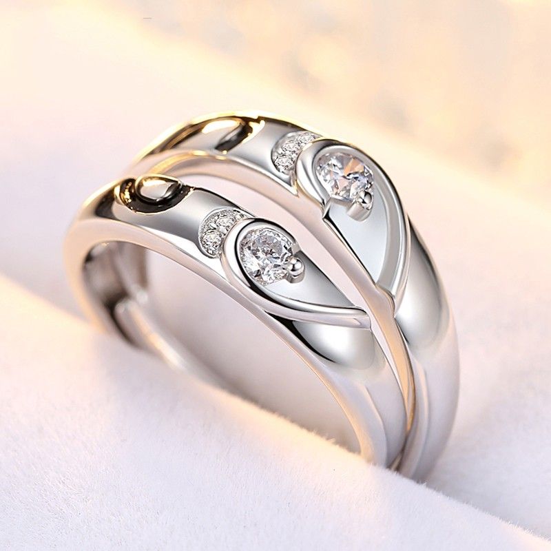 925 Argent Incrusté CZ En Forme De Coeur Bonheur Doux Anneaux De Couple
