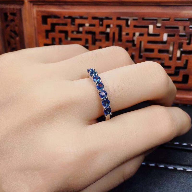 Anneaux Ajustables En Argent Sterling S925 Avec Pierres Précieuses Bleues Et Rouges Naturelles