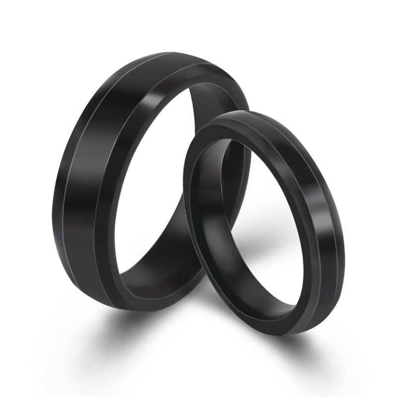 Anneaux D'amant Noirs Anneaux En Acier Au Titane Gravables Pour Couples