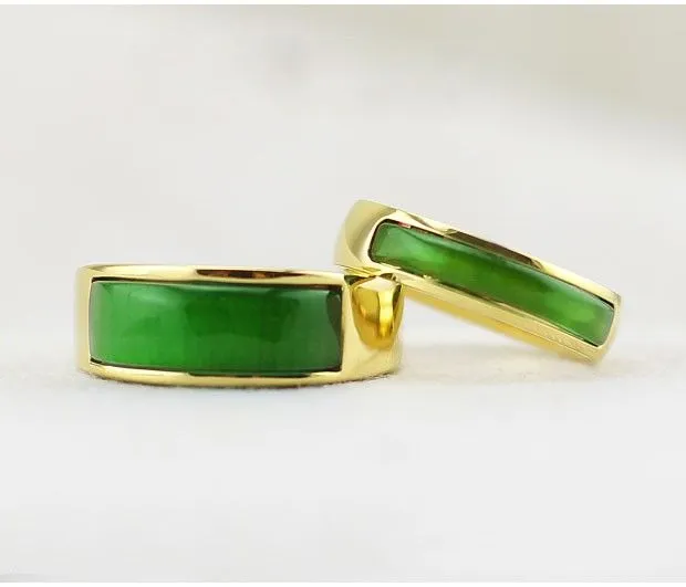 Anneaux De Couple D'amoureux En Acier Titane Incrustés D'agate De Couleur Or Et Verte