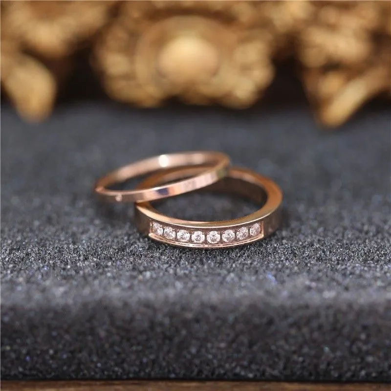 Anneaux De Couple Amoureux En Acier Titane Plaqué Or Rose