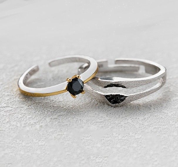 Anneaux De Couple D'amoureux D'acier De Titane De Zircone Cubique De Couleur Or Rose