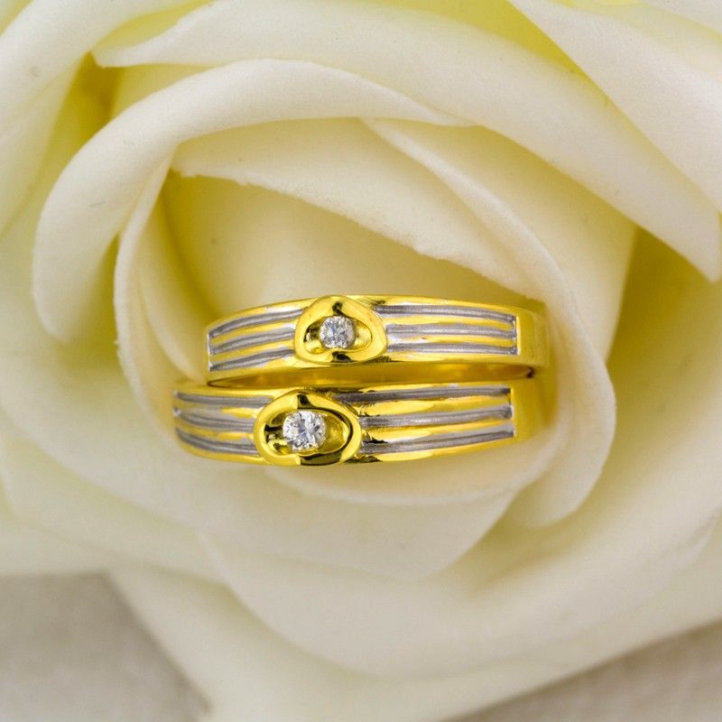 Anneaux De Couple En Forme De Coeur S925 Plaqué Argent Incrusté D'or En Zircone Cubique