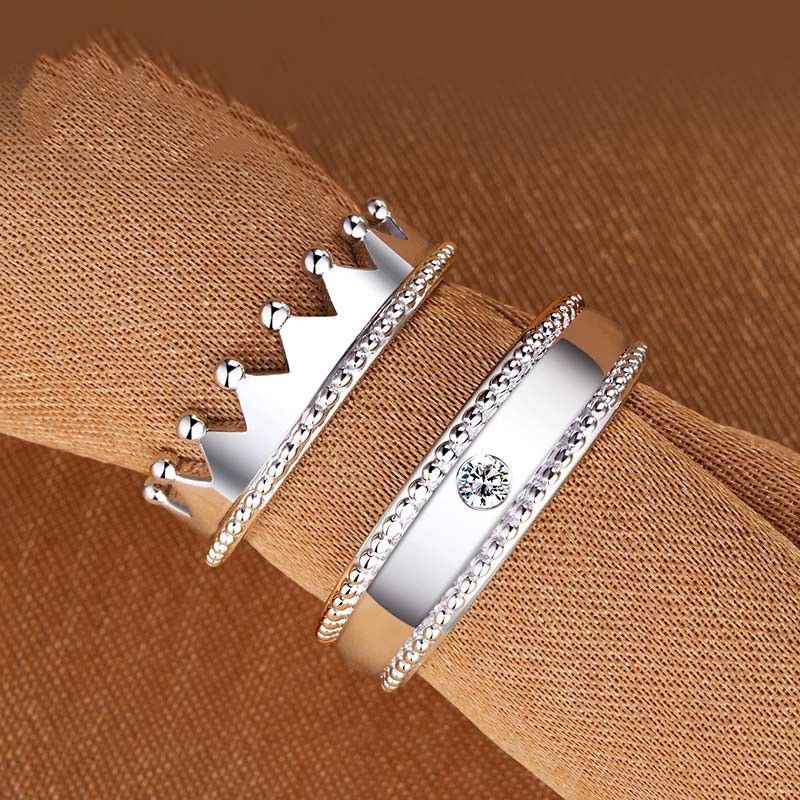 Anneaux De Couple En Platine Plaqué Argent 925 Avec Couronne Créative Exquise À Bord De Boule