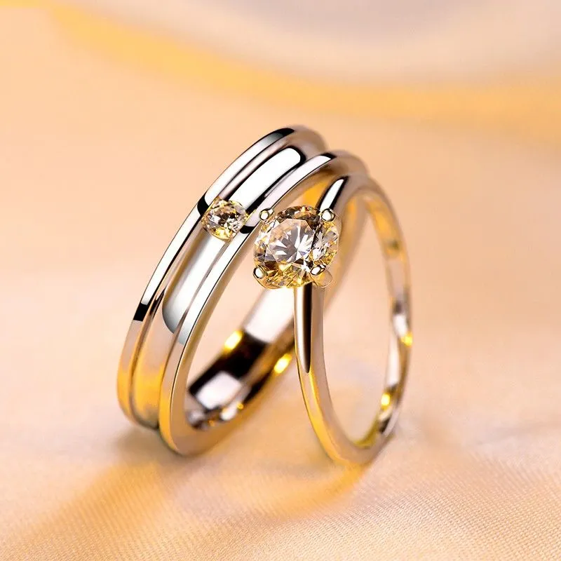 Anneaux De Couple En Zircon Cubique De Luxe Avec Incrustation D'argent Classique 925 Accompagnés De La Vie