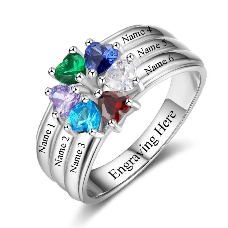 Anneaux De Pierre De Naissance Anneaux De Mères En Argent Sterling 925 Personnalisé Pierre De Naissance Famille Zircon Cubique Anneau Cadeau De Fête Des Mères