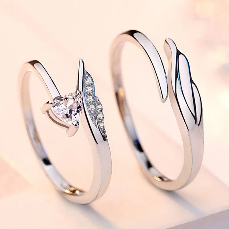 Anneaux De Promesse De Plumes D'ange Pour Couples En Anneaux De Couple Ajustables En Argent Sterling 925
