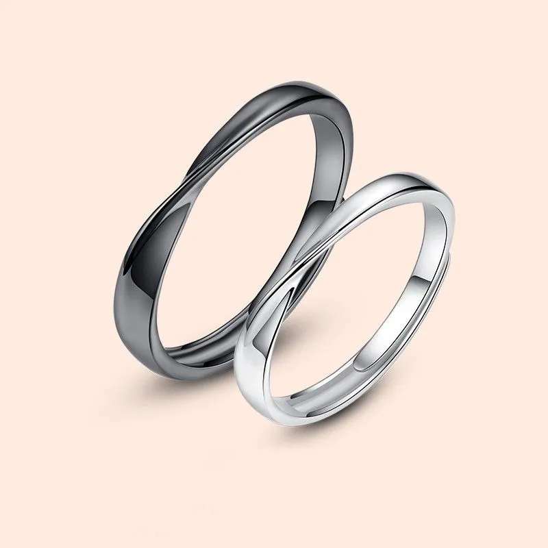 Anneaux De Promesse Réglables En Argent Sterling 925 Mobius Design Noir Et Argent Pour Les Amoureux