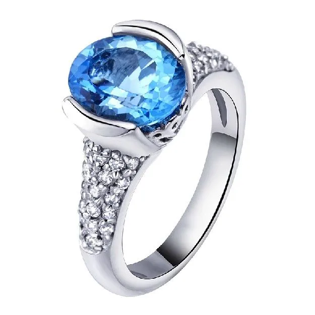 Bague En Argent Sterling 925 Avec Topaze Naturelle Noble