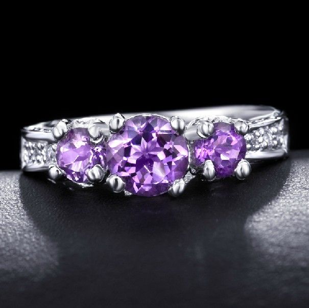 Bague En Argent Sterling 925 Avec Trois Améthystes Naturelles Pour Femmes