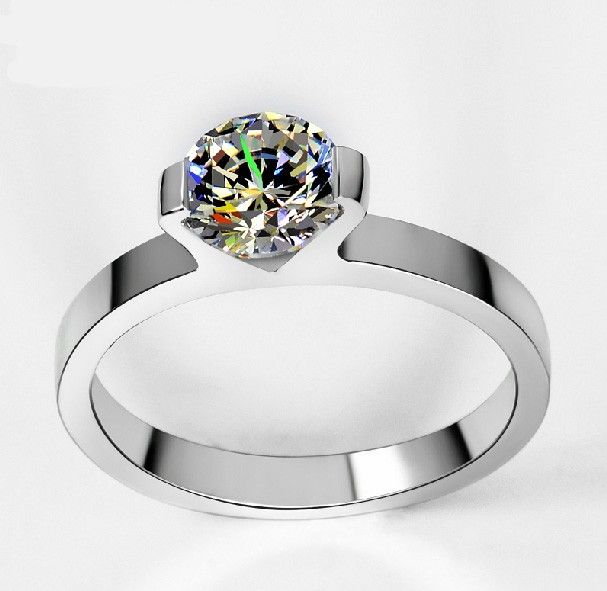 Bague En Argent Sterling 925 Plaqué Platine Avec Diamant Artificiel Parfaitement Taillé De 1 Ct