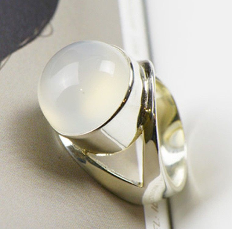 Bague En Calcédoine Blanche Naturelle Incrustée En Argent Sterling 925 À Large Ouverture Simple