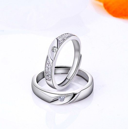 Bague De Couple Ajustable En Or Blanc Plaqué Argent 925