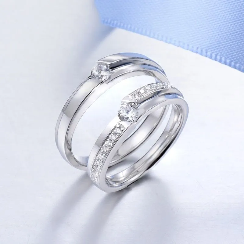 Bague De Couple En Zircone Cubique De Qualité Incrustée D'argent S925 Élégante Et Retenue