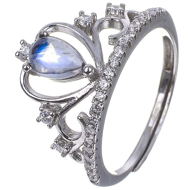 Bague Couronne De Pierre De Lune Incrustée En Argent Sterling 925 D'origine Exclusive