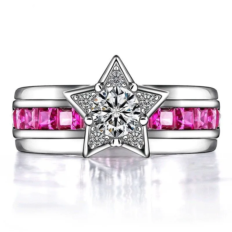 Bague Pour Femme Incrustée De CZ En Argent Sterling 925 En Forme D'étoile Exquise