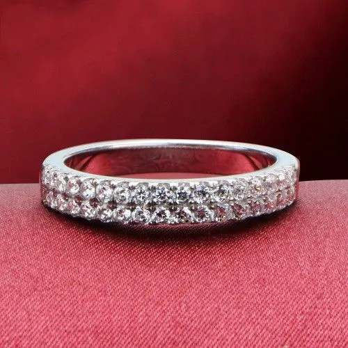 Bague De Fiançailles En Argent 925 Avec Double Micro Incrustation De Zircone Cubique