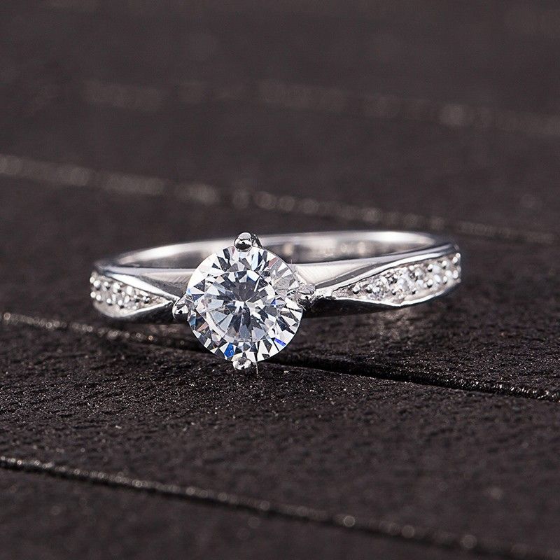 Bague De Fiançailles En Argent S925 Coupe Ronde Classique Contractée
