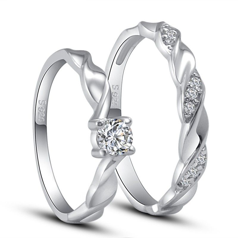 Bague De Fiançailles CZ Incrustée En Argent Sterling 925 Plaqué Or Simple Discret