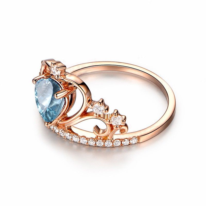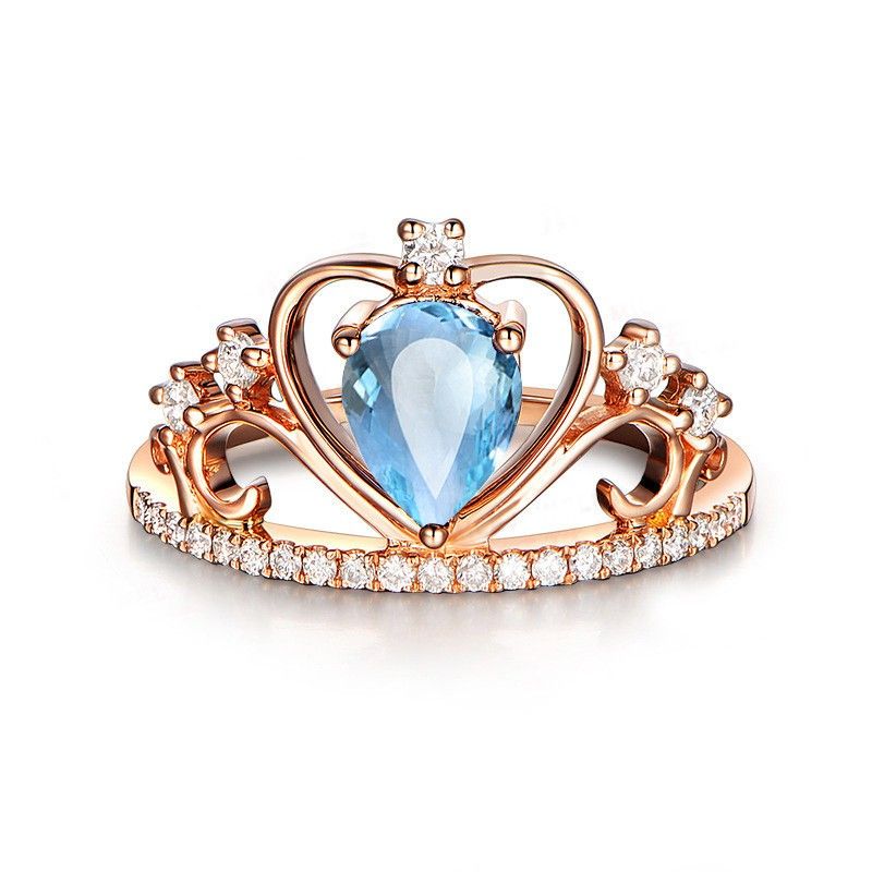 Bague De Fiançailles / Mariage Pour Dame En Argent Sterling Avec Couronne D'or Rose Topaze Bleue Naturelle