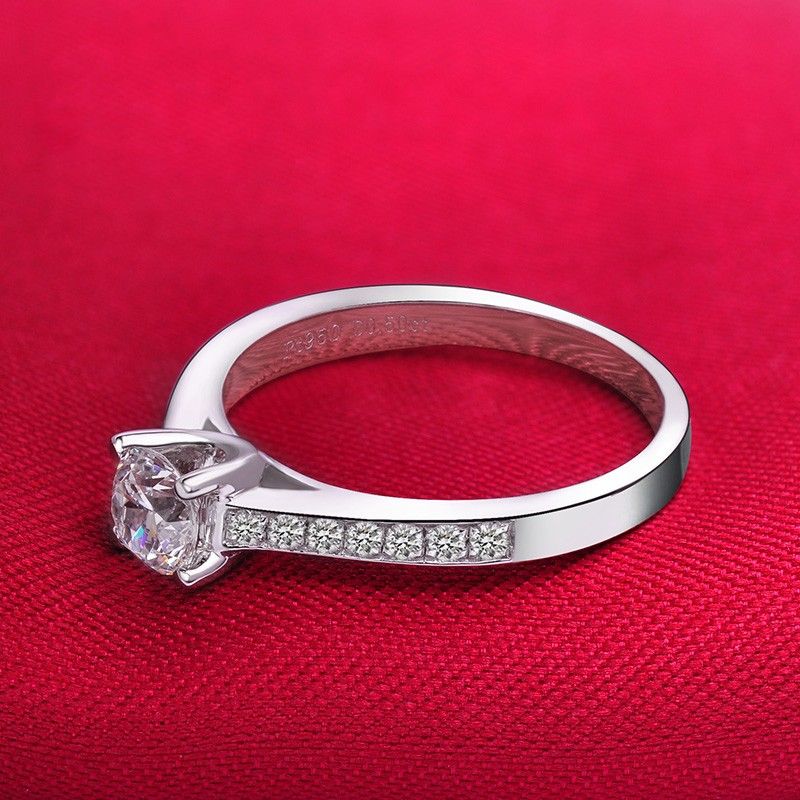 Bague De Fiançailles En Or Blanc 18 Carats Plaqué Argent Sterling 925 Classique