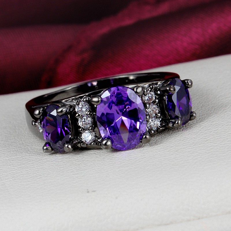 Bague De Fiançailles De Pierres Précieuses Violettes Incrustées D'or Noir Plaqué Cuivre