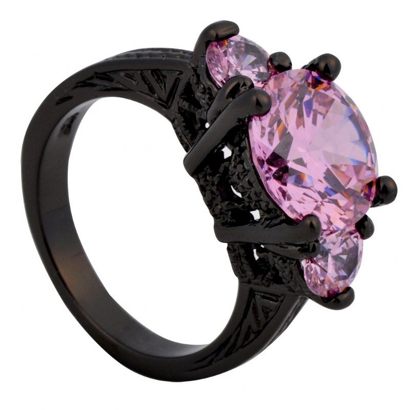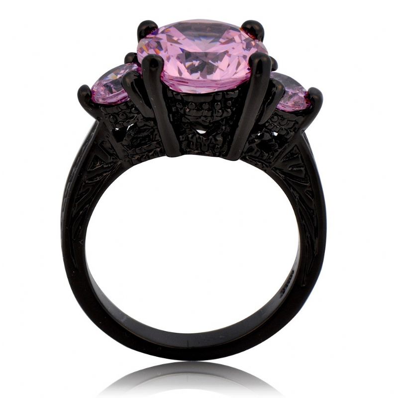 Bague De Fiançailles / Bague De Fiançailles Plaquée Or Noir 10kt Pour Dame En Saphir Rose Taille Ronde