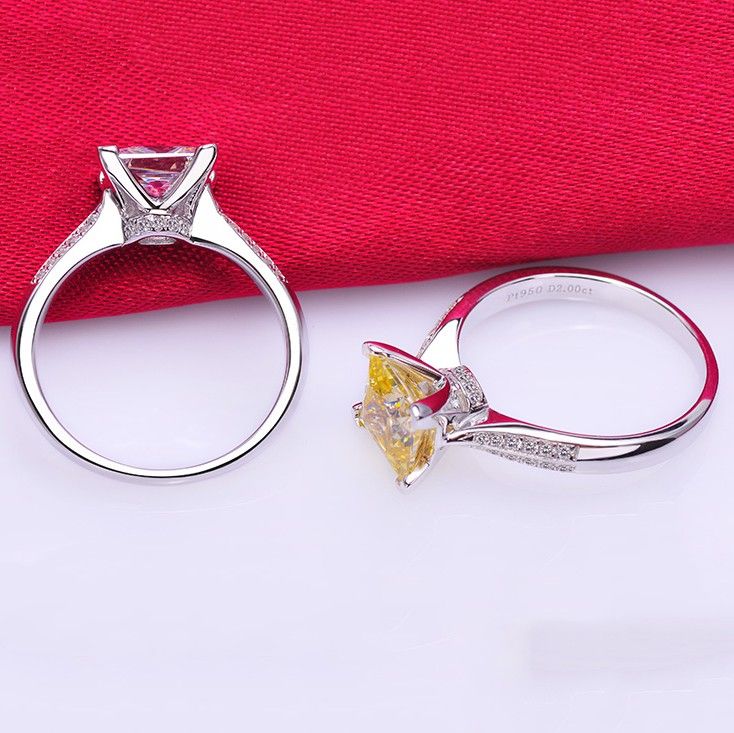 Bague De Fiançailles En Platine Plaqué Argent Taille Princesse 2 Ct De Luxe