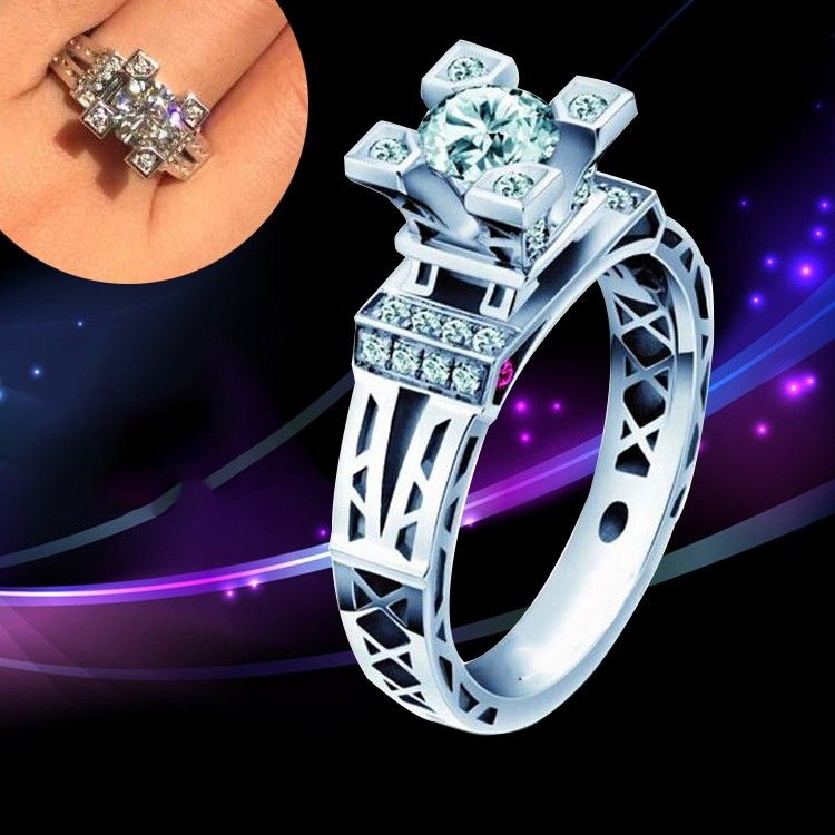 Bague De Mariage En Argent Sterling Avec Tour Eiffel Plaqué Or Blanc 18 Carats
