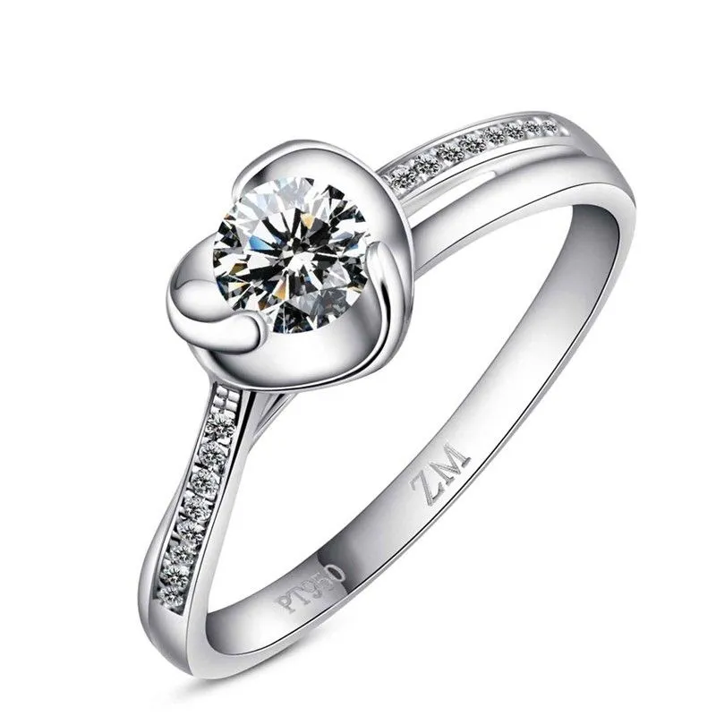 Bague De Mariage En Platine Plaquée En Argent Sterling 925 Avec Motif Unique En Forme De Coeur
