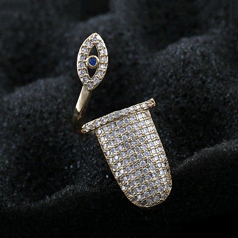 Bague À Ongles Plaquée Or En Zircon Cubique En Forme D'oeil De Vente Chaude Pour Les Femmes