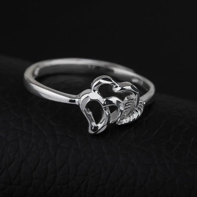 Bague D'ouverture Pour Femme En Argent Sterling 925 En Forme De Coeur Contracté