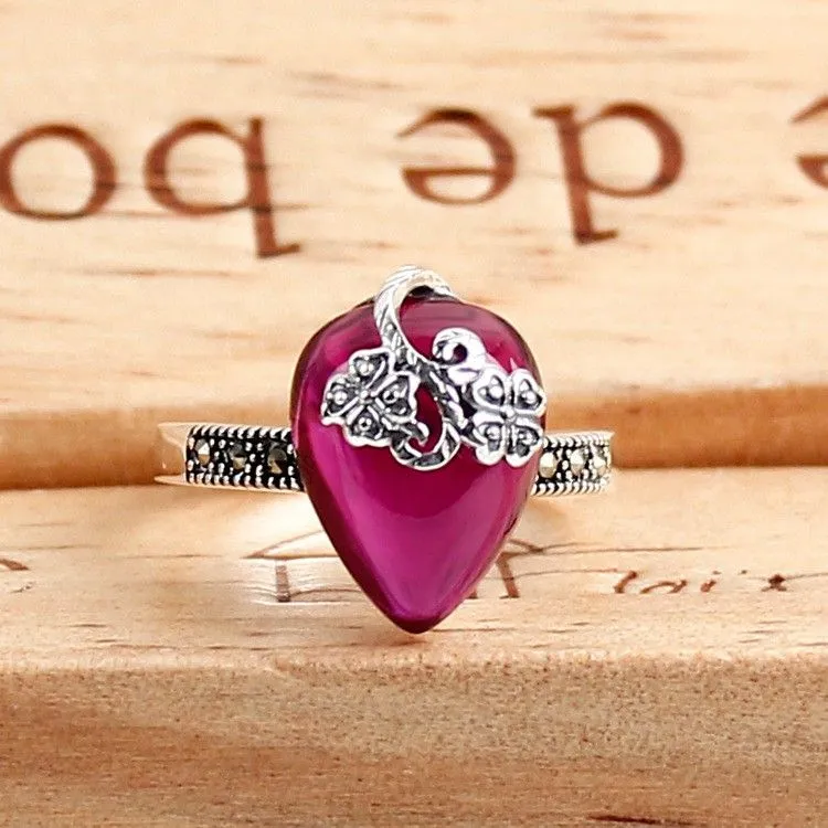 Bague Sculptée En Corindon Incrusté En Argent Sterling 925 New Court Style