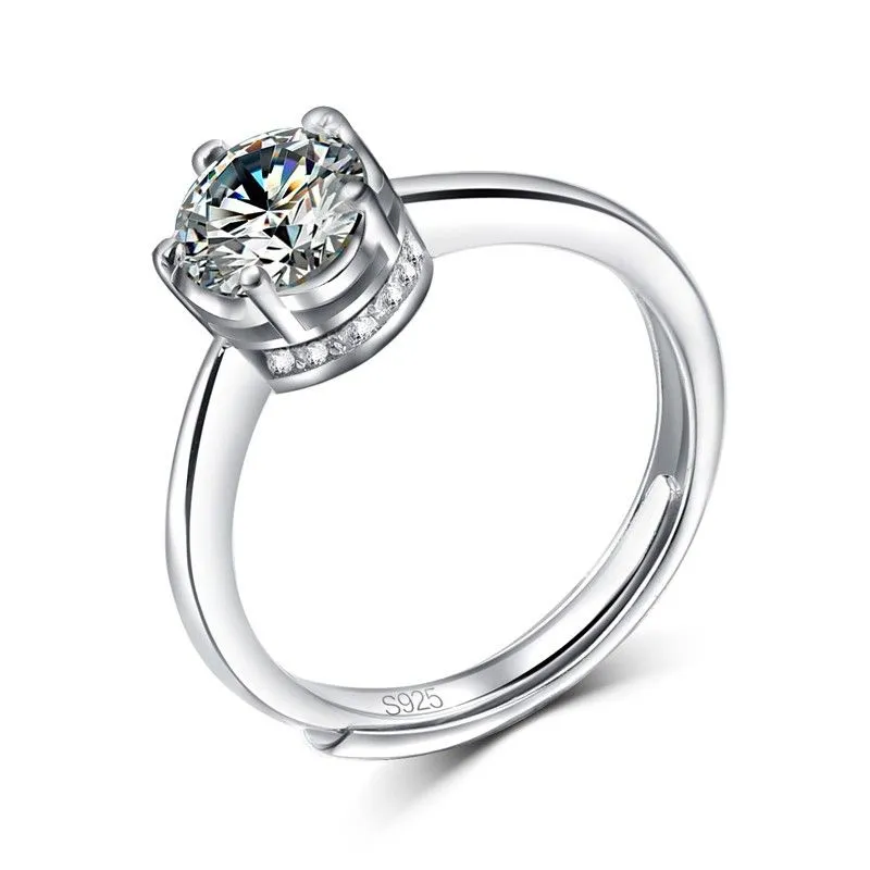 Belle Bague De Fiançailles D'ouverture De Couronne De Zircon Cubique Brillant Incrusté D'argent 925