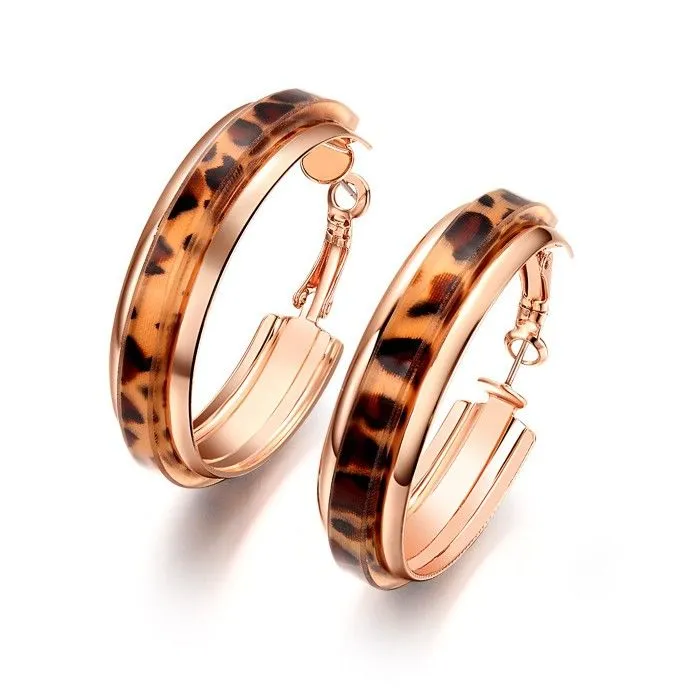 Boucles D'oreilles Créoles Dorées En Alliage De Mode Léopard Sexy