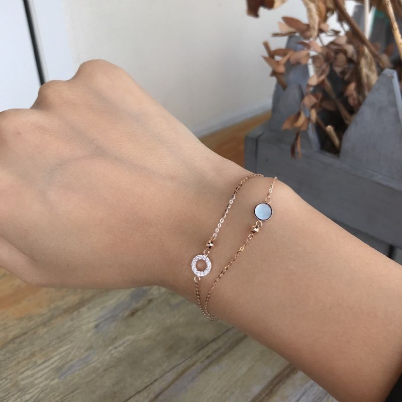 Bracelet Double Chaîne Unique Shell Rose Pour Femme En Or 18k