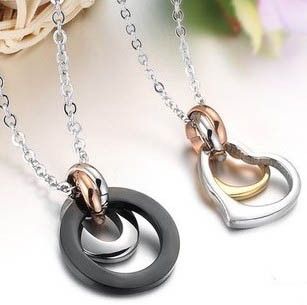 Collier Couple Double Coeur Diamant Titane Acier (prix Pour Une Paire)