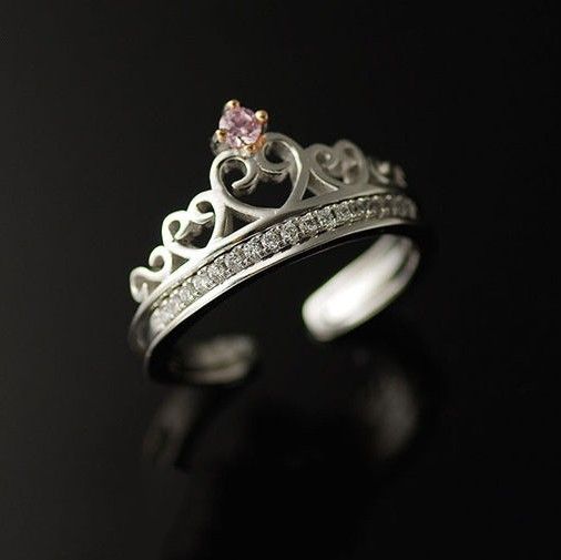 Couronne Créative En Forme De Coeur Bague En Argent 925 Incrustée De Zircon Cubique Rose