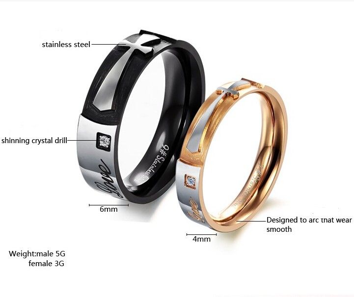 Cross Love Titanium Steel Lover Anneaux Anneaux Abordables Pour Les Couples (prix Pour Une Paire)