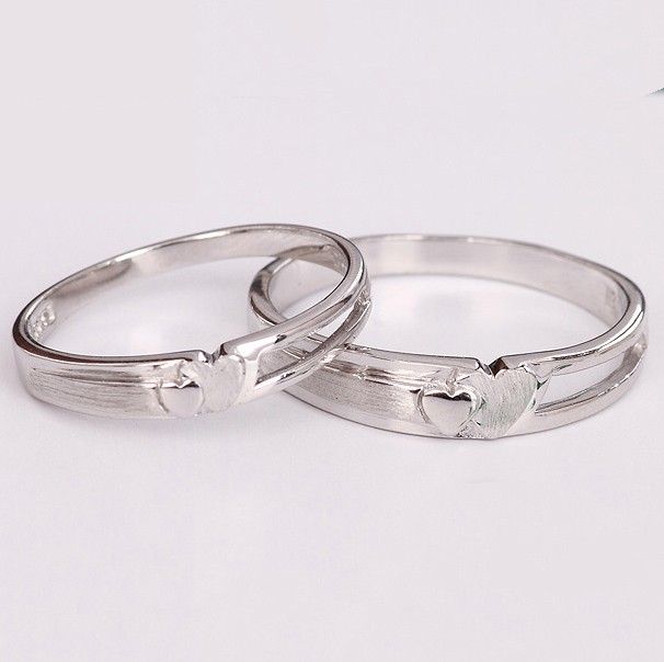 Delicate Matte Creative Heart To Heart S925 Anneaux De Couple Creux En Argent Sterling