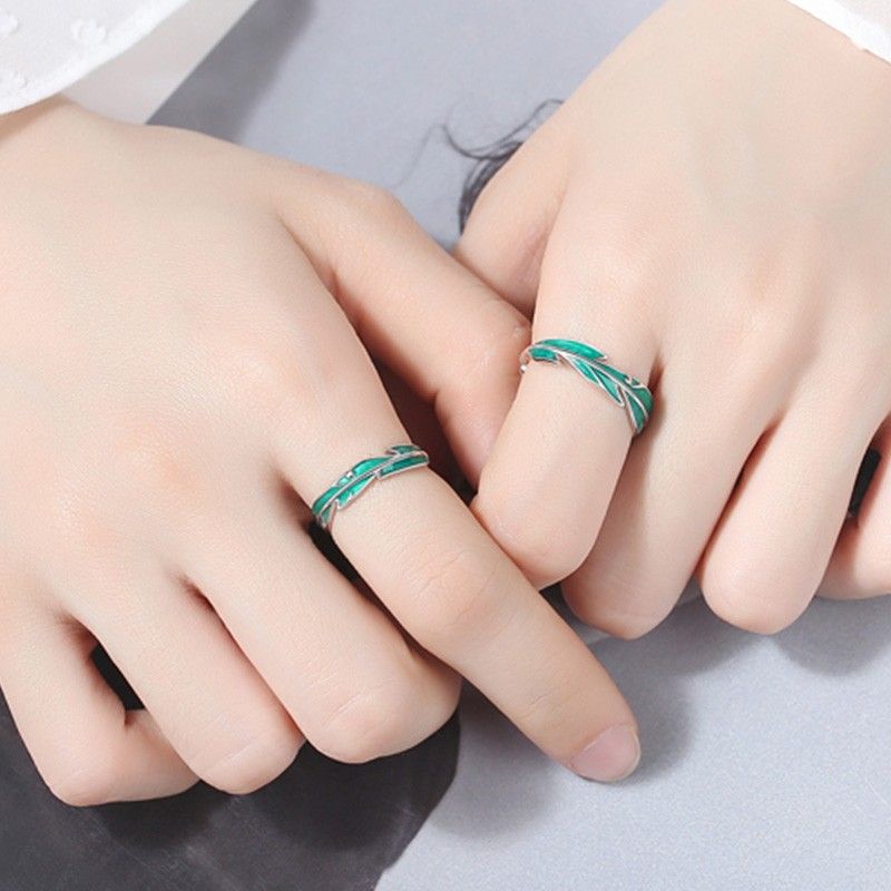 Élégantes Bagues D'amoureux Réglables En Argent Sterling 925 Avec Feuille De Bananier