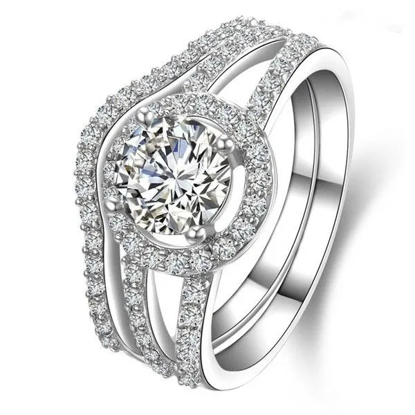 Ensemble De Bague De Fiançailles Diamant Émulation En Argent Sterling 925 Exquis