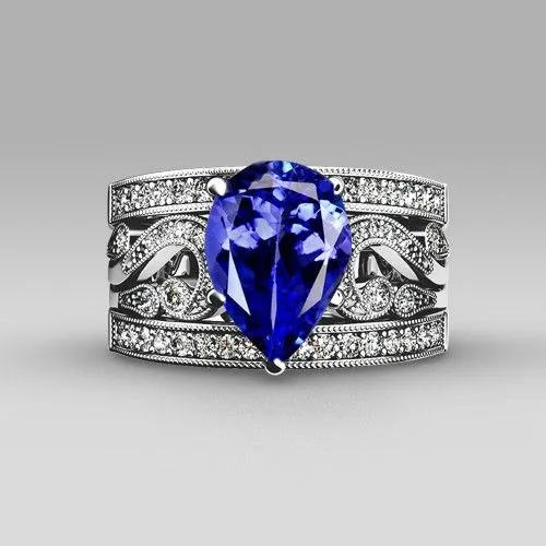 Ensemble De Bagues En Argent Sterling 925 Avec Saphir Bleu Créé En Laboratoire Taille Poire