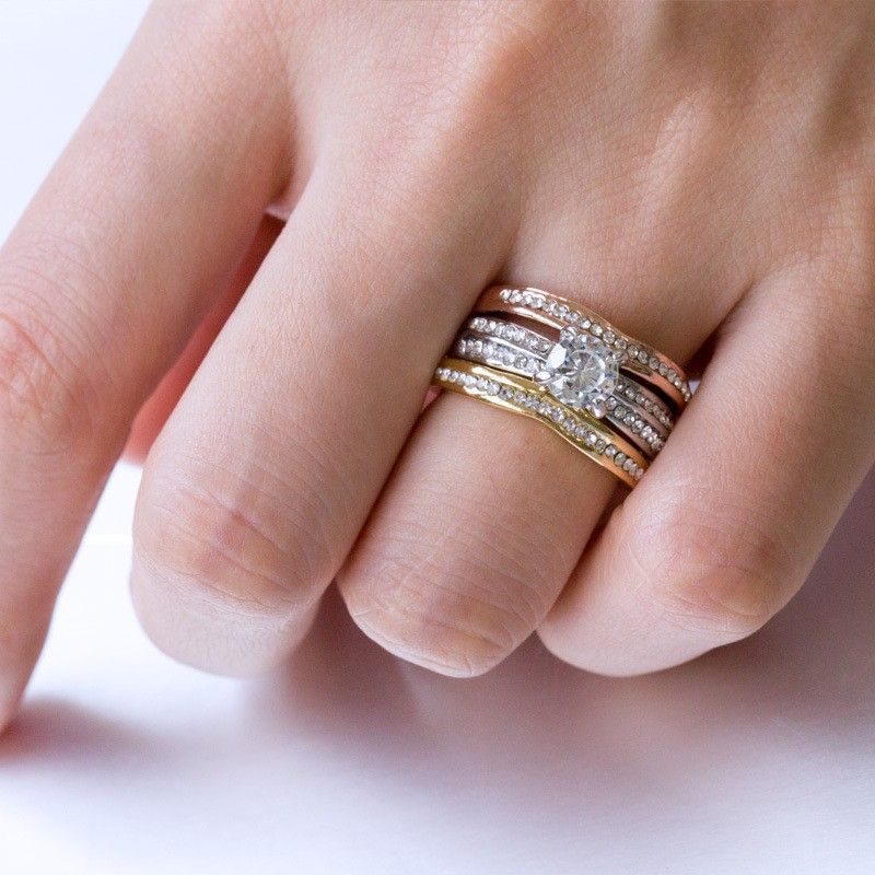 Ensemble De Bagues De Trois Couleurs Différentes Incrustées De CZ Brillant