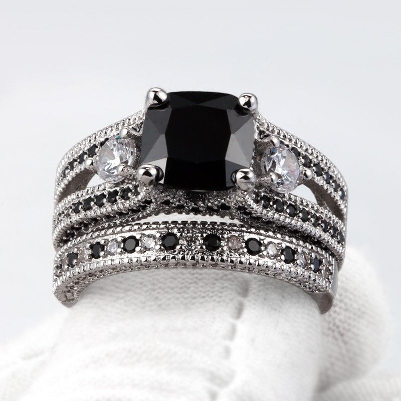 Europe En Cuivre De Haute Qualité De Luxe Avec Ensemble De Bagues De Fiançailles En Zircone Cubique Incrusté D'or Blanc