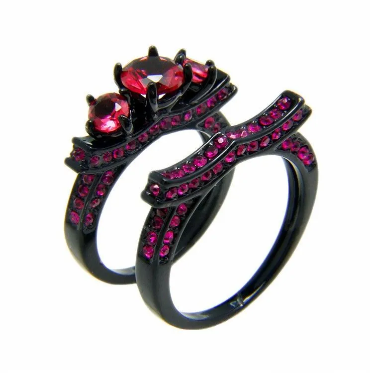 Europe Fashion Atmosphere Ensembles De Bague De Fiançailles CZ Incrustés À La Main En Or Noir